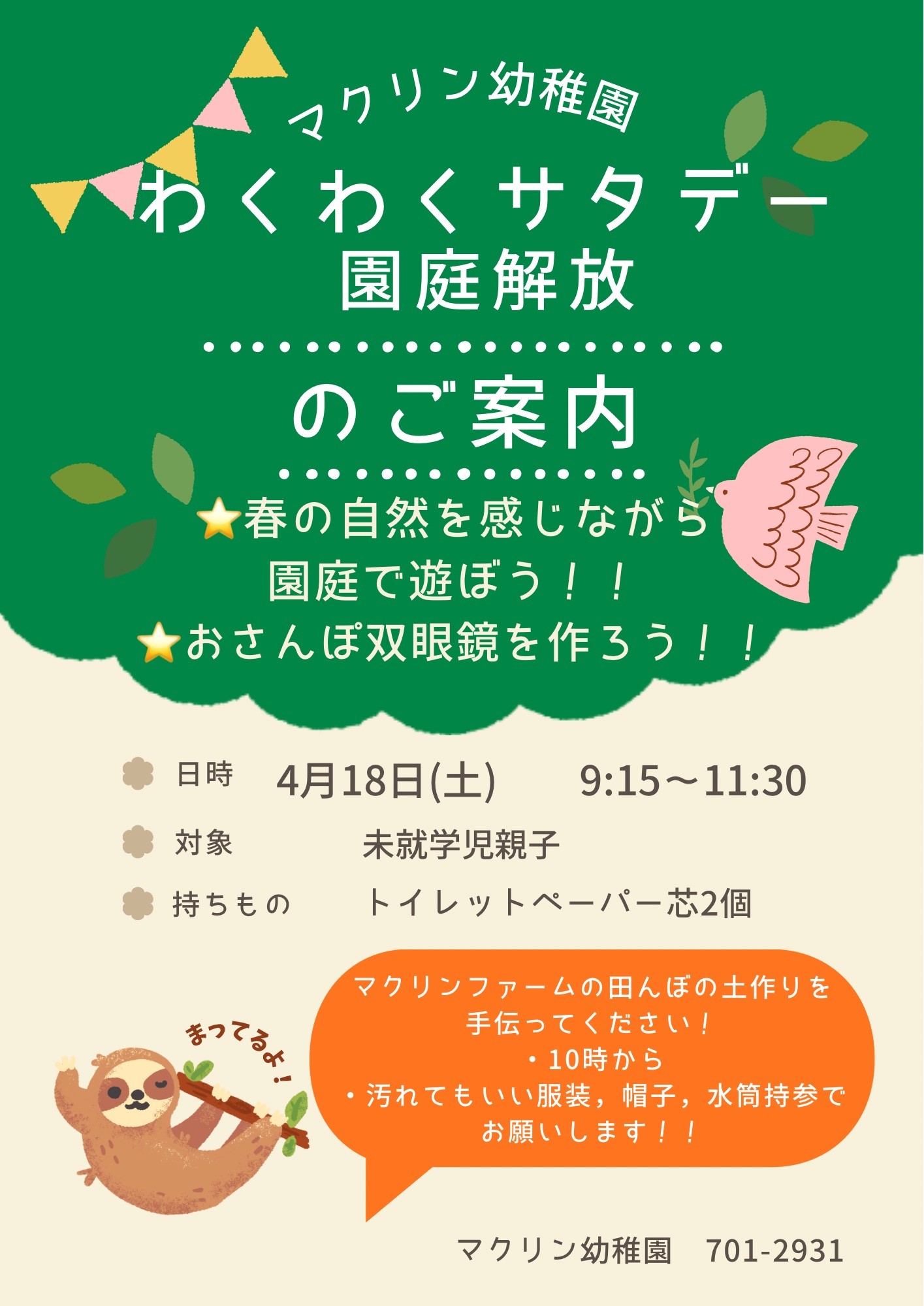 【次回わくわくサタデーのお知らせ】(園庭開放)