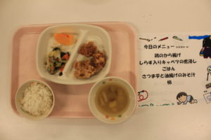今日は、じゃがいもスープとリンゴもあるよ(*^^*)