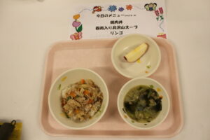 ・午前11:10にお迎えに来ていただいてお母さんと一緒にふれあい遊びをしたりして11:30ごろ帰っていただきます。親子でお帰り下さい。 - 2学期(9月下旬)からはお弁当を開始します。保育時間を2時間余り延ばしてお迎えは