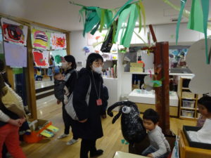 あー、楽しかった!満足げにお部屋に戻ってきたこどもたち。来月もお野菜グループで遊ぼうね!