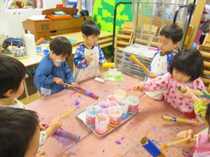 ことり組、ひかり組は世界での水事情を知って蛇口をひねって安全な水が出ることは当たり前のことではないことを知りました。みんなでお水を大切にしようね☆