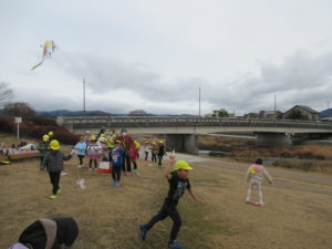 ★今日は昨日作った凧を持って、神社へ凧あげに行きました。