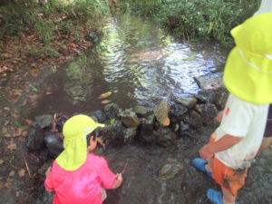 「つめたーい」「きもちいい」とまずは川に入って探検♪