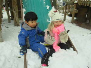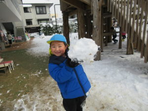 園庭は一面銀世界の朝!こどもたちは雪遊び三昧でした★雪合戦や大きな雪玉作り!!!